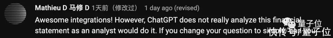 还有人等不到微软的动作,已经自己先把ChatGPT接入了Excel,得到了一个页面内的AI助手,也是抢先体验了一把。