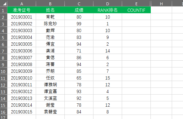 条条大路通北京,能实现智能排名的不仅仅只有RANK函数下面再给大家介绍一种方法:COUNTIF函数COUNTIF(计数区域,计数条件)常被用来计算区域中满足条件的单元格个数例如我们只要输入:=COUNTIF(C2:C16,">90")
