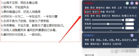 如果你想另起一行在刚刚那排文字的前面或者后面编辑文字,那就选中那排文字区域,在右侧弹出的【全局样式】中选择【后空行/前空行】