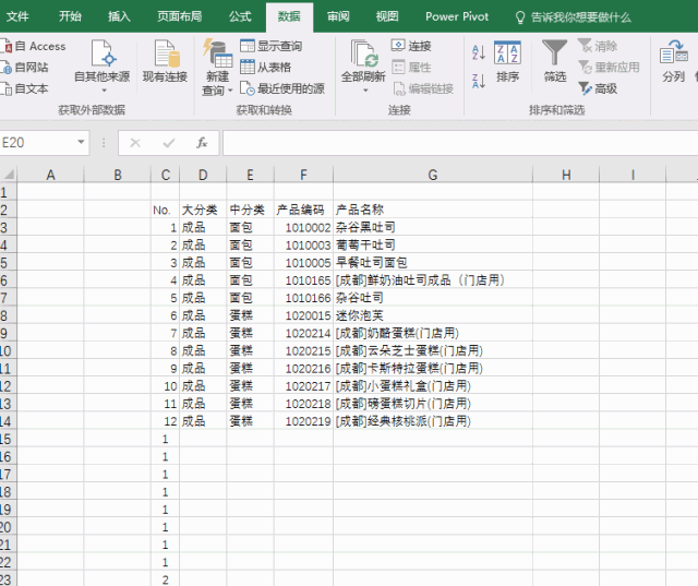 事实上,这个操作的思路在之前的技巧已经讲过,就是利用编号排序的功能,自动隔开数据。具体操作如下:在数据列表的下方,填充8个1,8个2, 8个3…..以此类推。如下图所示: