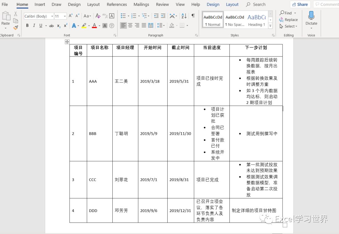 案例:将下图中的 Word 表格转成 Excel 格式,保持格式与原表格一致。