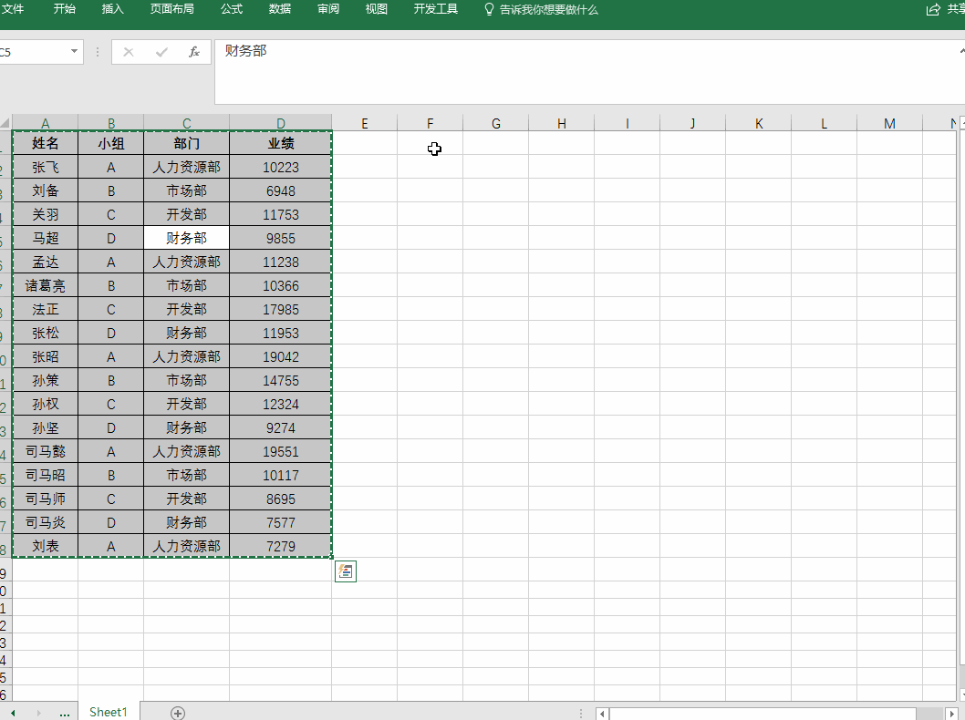 选中F1至w4,在F1单元格输入数组公式:=TRANSPOSE(A1:D18),并按组合键结束,否则会出错。GIF动图: