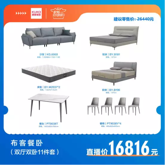 以皮艺客厅餐厅卧室(双厅双卧10件套)套餐为例,零售价46800元,直播间套餐价19816元!近期有购买家居用品需求的消费者,一定提前预约直播间。