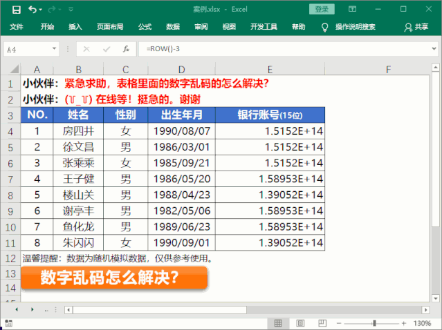 1数字“乱码”怎么解决?选中变成科学计数法的单元格数据,单击鼠标右键,选择“设置单元格格式”,在自定义选项里面输入0 ,确定就好了。