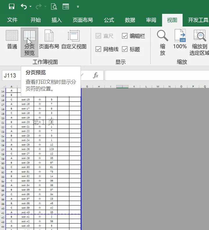 普通:默认工作簿视图分页预览:以分页的方式查看打印工作表表时分页符的位置
