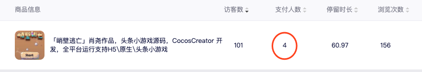 「e梦工坊」独立游戏团队,自己开发运营了近一年的两款游戏,亏的一地鸡毛,成了微店的镇店之宝,特别是《宝宝当学霸》访客数与停留时长都很惊人,看下图,这两个游戏源码为「e梦工坊」上 W 的进账,终于让创始人有机会可以开心吃麻辣烫了。
