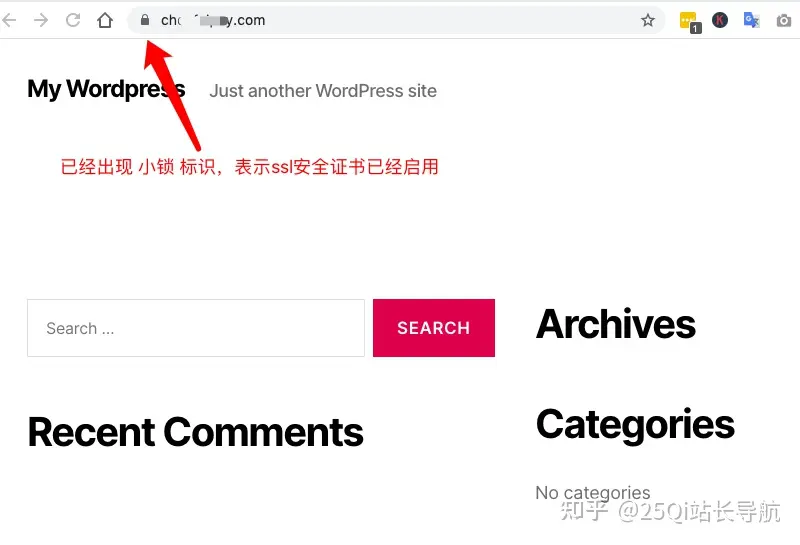 最后,我们再重新刷新网站,这时候,看到浏览器地址栏上原先的“不安全”三个字已经消失,变成了一把小锁,表示你的网站安全证书已经启用生效了。