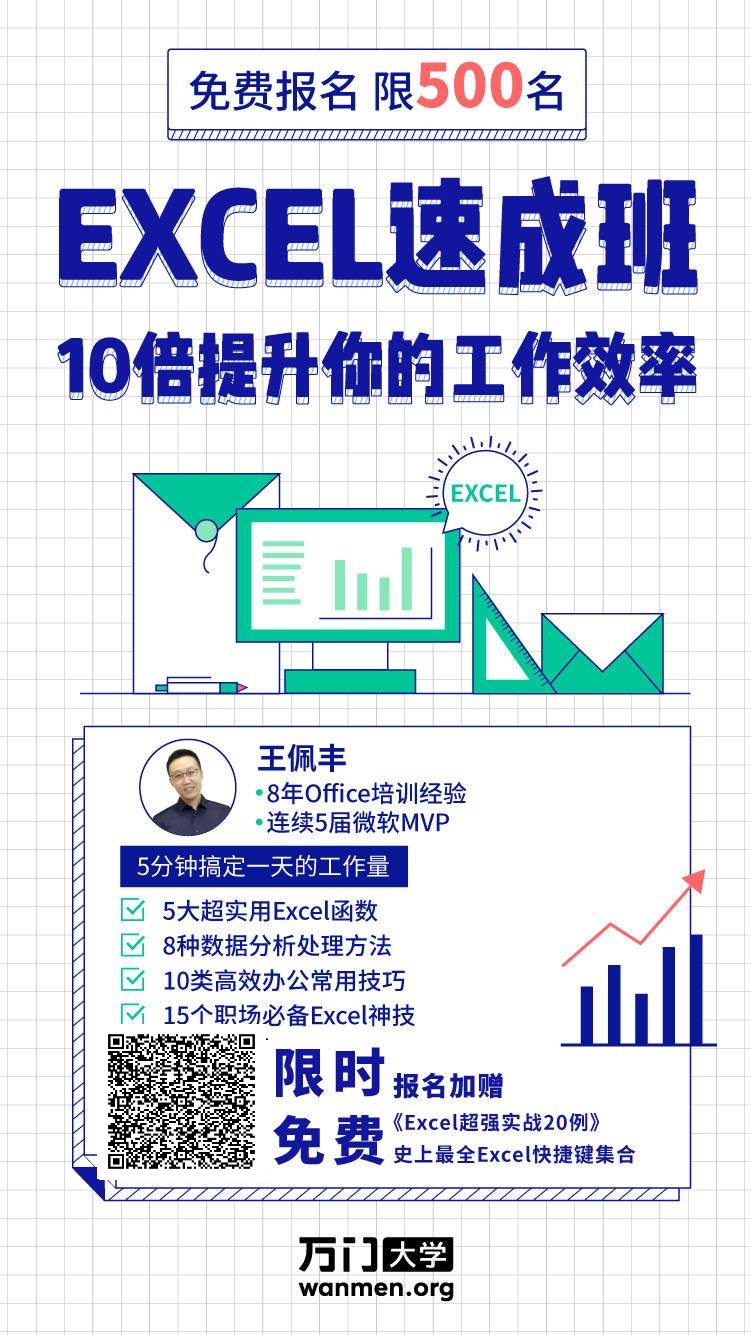 ,为大家开设《3小时学会Excel数据处理》课程,免费学习,再赠《Excel超强实战20例》课程+史上最全Excel快捷键合集。