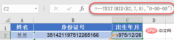 再使用TEXT函数,将这个字符串变成”0-00-00″的样式,结果为”1975-12-26″。