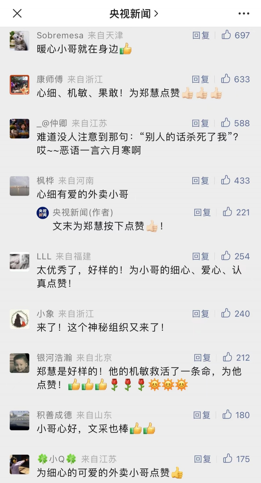 发表后阅读量飞速10万+网友纷纷对外卖小哥的“义举”点赞!