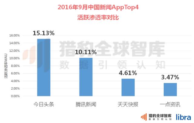 (作为门户类新闻,腾讯以一敌四)2今日头条今日头条依靠其算法的精准推送能力以及时间上的先发优势,稳居首位中国市场新闻类App首位2015年以今日头条、天天快报、一点资讯为代表的中国个性化推荐类新闻客户端实现了对门户类新闻客户端的全面超越。