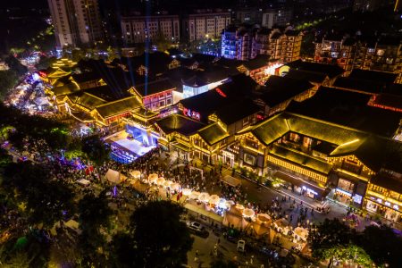 9月29日,荣昌夏布小镇灯火辉煌,吸引了不少市民、游客前来游玩。记者尹诗语摄/视觉重庆