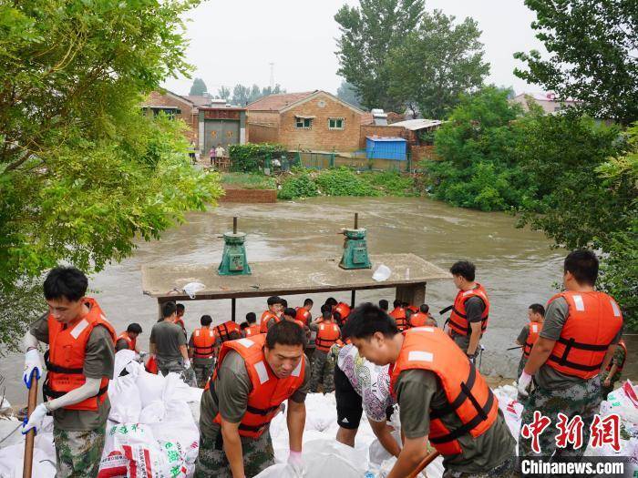 截至目前,河北省廊坊军分区共出动民兵1469人,协助转移群众32269人,抗洪抢险工作仍在有序开展。图片由廊坊军分区提供。