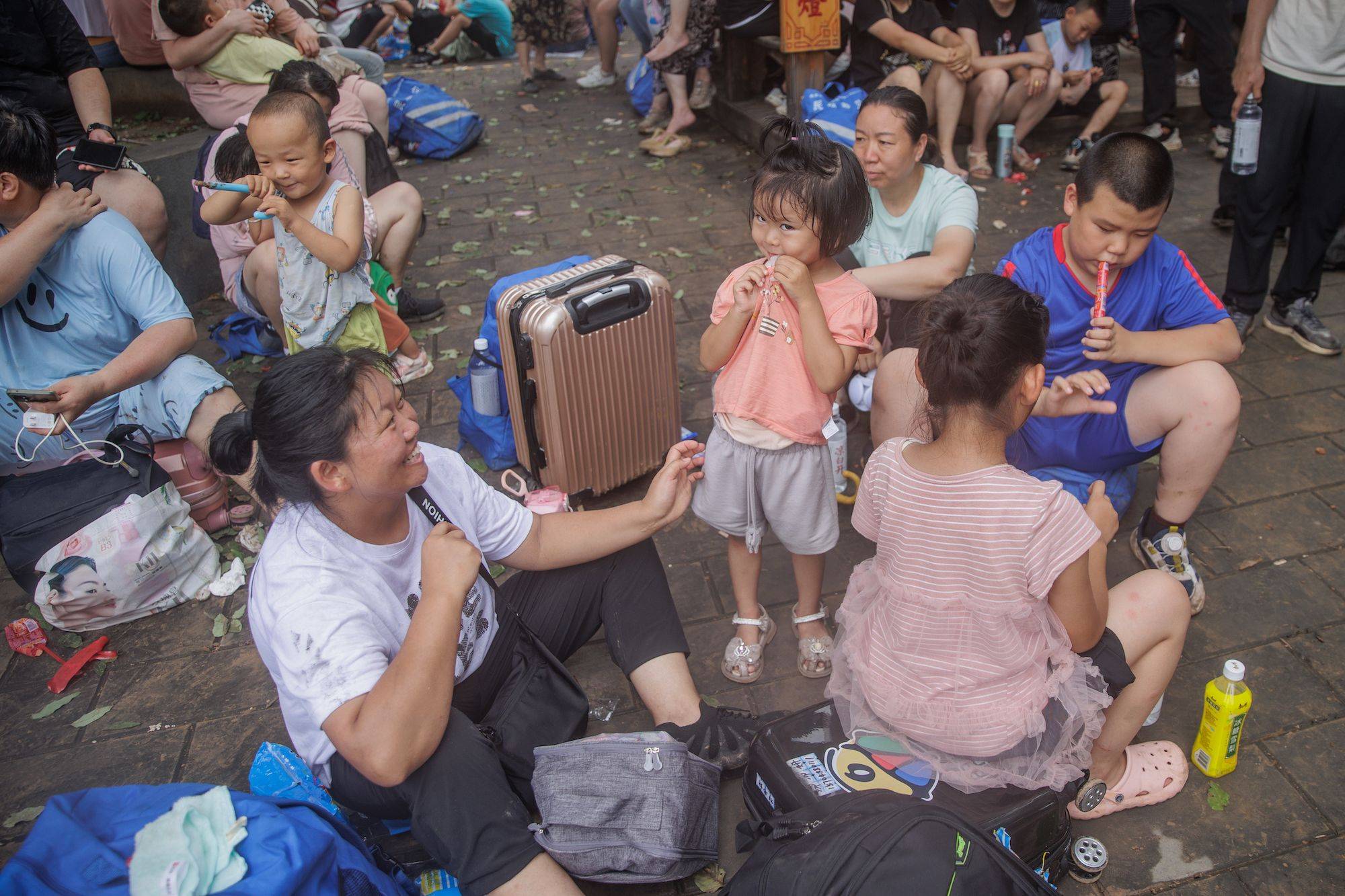 8月2日,滞留旅客在妙峰山镇短暂休整。新京报记者 王子诚 摄