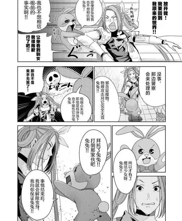 但很快洋子迎来了一个坏消息,这次魔法少女委托没有年龄限制,而未完成委托的精灵会死。既然不接委托有性命之忧,兔也不管魔女还是魔法少女了,马上对着洋子友好微笑,准备开始欺诈。然后被洋子光速拒绝。