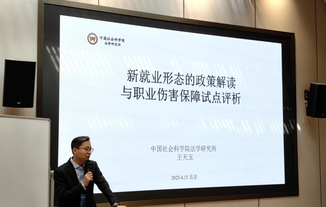 (研讨会合影图)会议第一天,王天玉主任做了“新就业形态的政策解读与职业伤害保障试点评析”的分享他为大家梳理了新就业形态的关键性立法与政策,以政策的孕育阶段、发展阶段、发展方向为切入点,剖析了制度的变革与发展,讲解了平台类型化与基础关系,并对各部门发布的文件做出详尽深刻的解读。