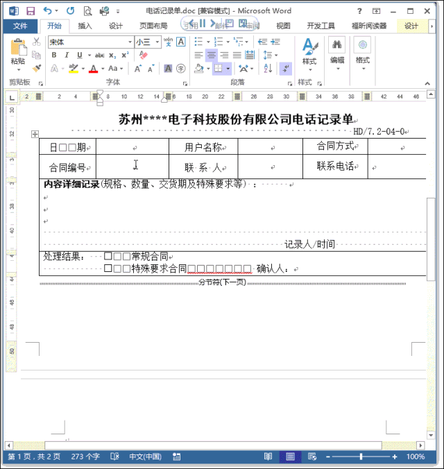 其实要删除这个空白行很简单,只要按照上面所述进行设置即可但是,作为Word技巧达人,仅仅处理这样一个小问题,就显得太没有技术含量了今天我们要说的是这样一个文档,第1页是做好的电话记录单,共4个表格,在第2页有一个空白行。