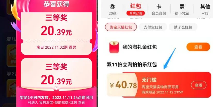 手机淘宝搜 天降红包1122 可直达,必得红包。