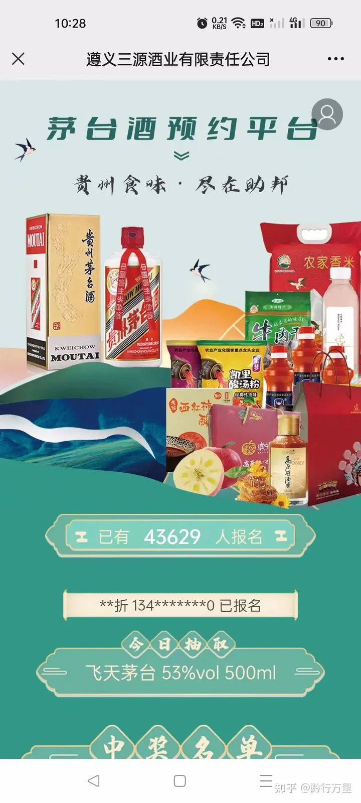 3、用户可以在平台入驻商家任一商家平台参与报名,且只能进行一次报名4、为确保预约的公开性、公平性,当预约人数超过当日可销售的茅台酒时,系统将会自行启动随机功能,从平台所有商家预约名单中随机抽取相应人数平台将通过短信通知和“酱香遵义”平台微信公众号消息通知两种方式通知预约成功。