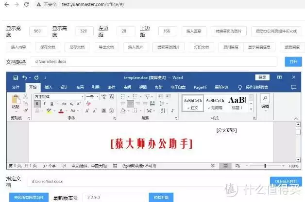猿大师办公助手是猿大师旗下的一款在浏览器中调用微软 Office、金山 WPS 及永中 Office 的软件,其原理是通过猿大师提供的内嵌网页技术,调用微软 Office 的 VBA 接口实现可程序化驱动的网页在线编辑办公控件,可分别将微软 Office、金山 WPS 及永中 Office 的 Word、Excel、PowerPoint 软件窗口内嵌到网页指定区域运行并操控。