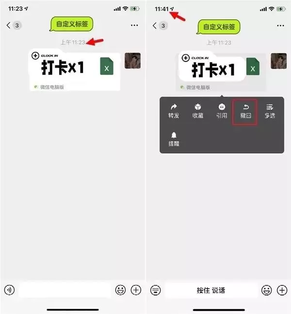 对此,腾讯客服表示确认:微信7.0.10及以上版本可在三小时内操作撤回文件,超时则无法撤回。不过文字、图片、语音、视频、名片、位置分享等普通消息,依然仅支持2分钟内撤回。