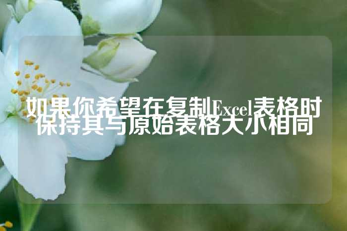 如果你希望在复制Excel表格时保持其与原始表格大小相同